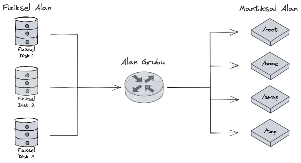 LVM (Logical Volume Manager) Linux sistemler için kullanılan mantıksal alan yöneticisidir. Fiziksel disk alanlarını (Physical Volumes), mantıksal alanlara (Logical Volumes) bölümlenmesi konusunda yapıları oluşturmamıza olanak sağlar. Yüksek boyutlu disk yapıları rahatlıkla yönetebilmemizi, akabinde dinamik olarak işlemleri gerçekleştirebilmemize imkan tanımaktadır.