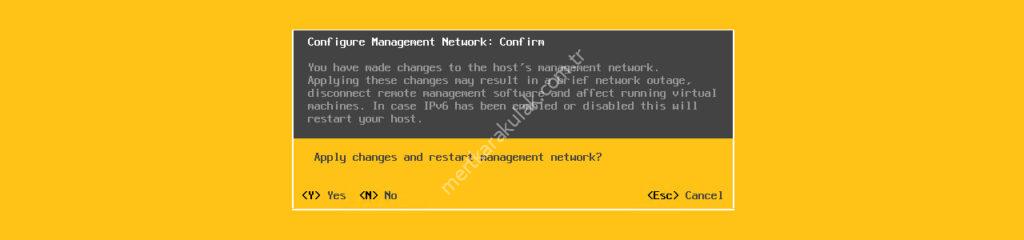 Yapılan değişikliklerin onaylanması ve Network Yönetim servisinin yeniden başlatılması için bize sorur sorar bizlerde yapılan işlemlerin hemen gerçekleşmesi için Y tuşuna basarak işlemi tamamlarız.
